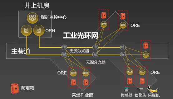 煤矿必须防爆,井下尽量简单。为了提升井下安全,避免因火花等造成瓦斯爆炸,矿井下要尽量避免使用电气设备。相比较传统网络,F5G全光工业网采用无源光器件组成的无源光环网,既减少了有源设备的使用,又减少了40%的防爆节点使用,使得矿井下电气安全性大幅提升。